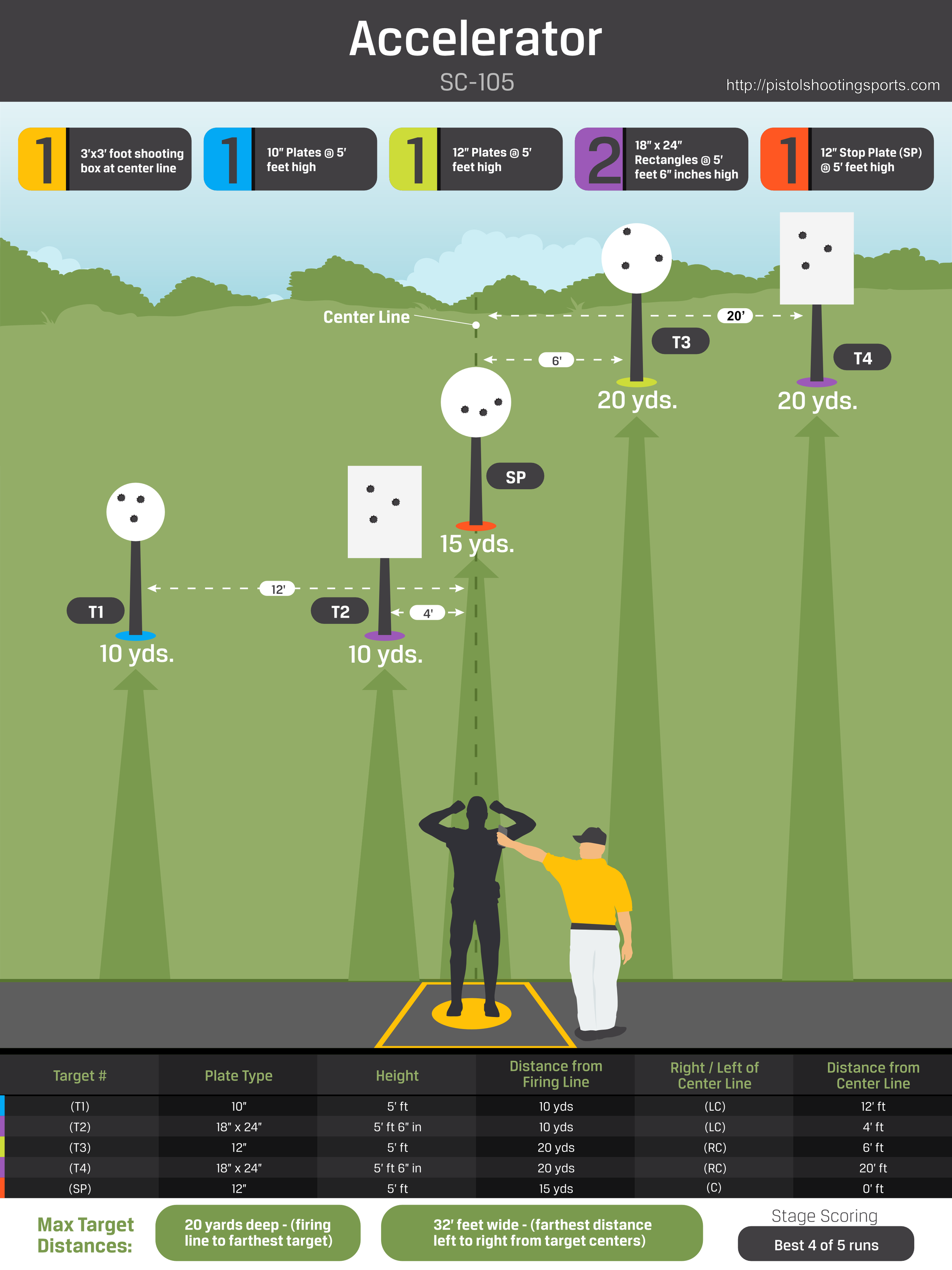 Competitors are scored on how fast they can complete a stage. The winner will have the lowest total time across all stages in a competition. For each run, only one hit per target is needed using an unlimited number of rounds. Your last target is called the stop plate, and your stage time and score are recorded when you hit this plate.